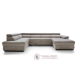 LIMON U je luxusní, celočalouněná, rozkládací rohová sedačka ve tvaru U, s dekoračním prošitím a nastavitelnými opěrkami hlavy a rukou.