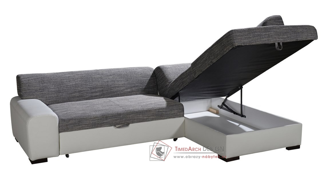 Rozkládací rohová sedačka s úložným prostorem MINOS je očalouněná v kombinaci látek dle výběru z nabídky.
