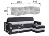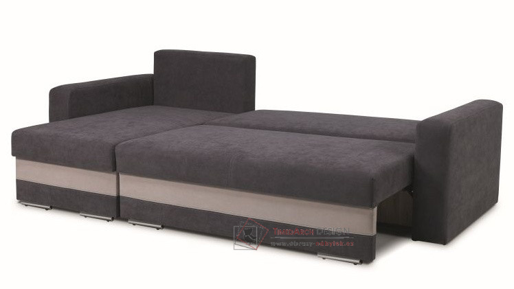 Celočalouněná, rozkládací rohová sedačka s úložným prostorem RIMINI je očalouněna v kombinaci látek dle výběru z nabídky.