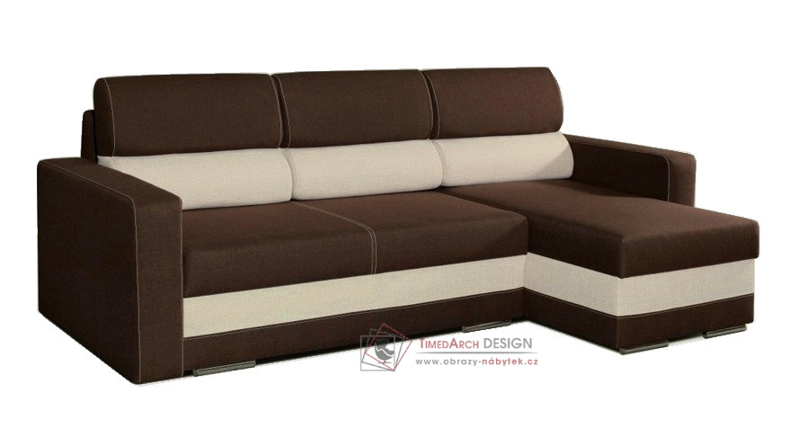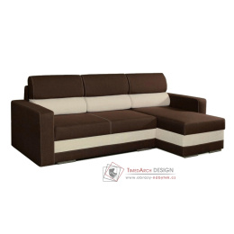 Praktická celočalouněná rohová sedačka s úložným prostorem RIMINI je očalouněná látkou hnědé barvy Inari 28.