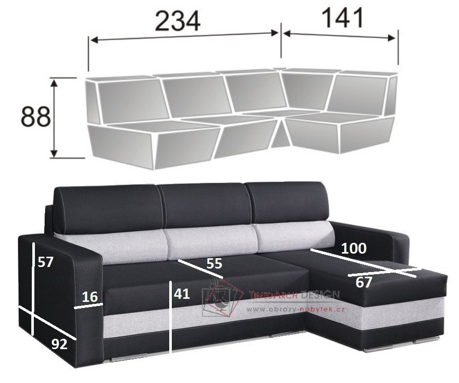 Sedačka je univerzální, lze složit do pravého i levého rohu.