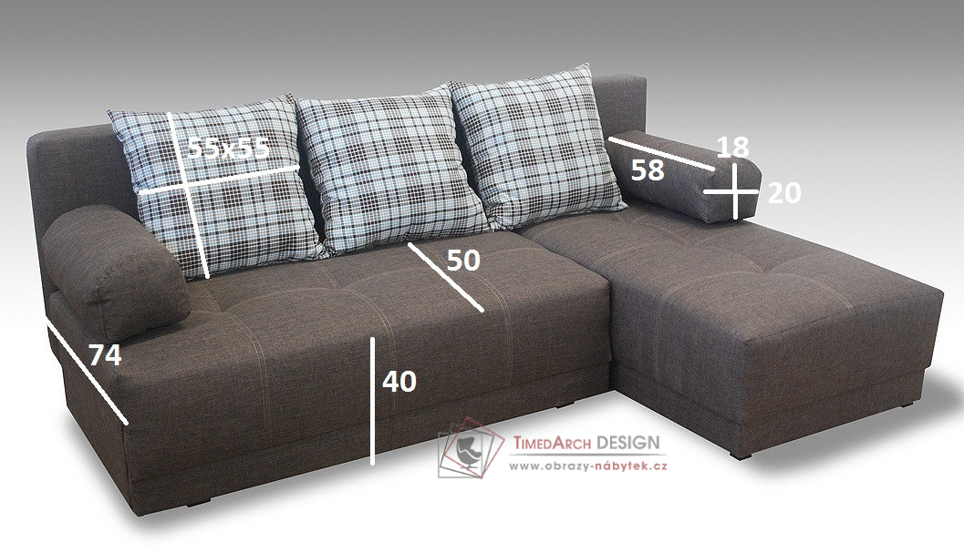 Sedačka je univerzální, lze složit do pravého i levého rohu.