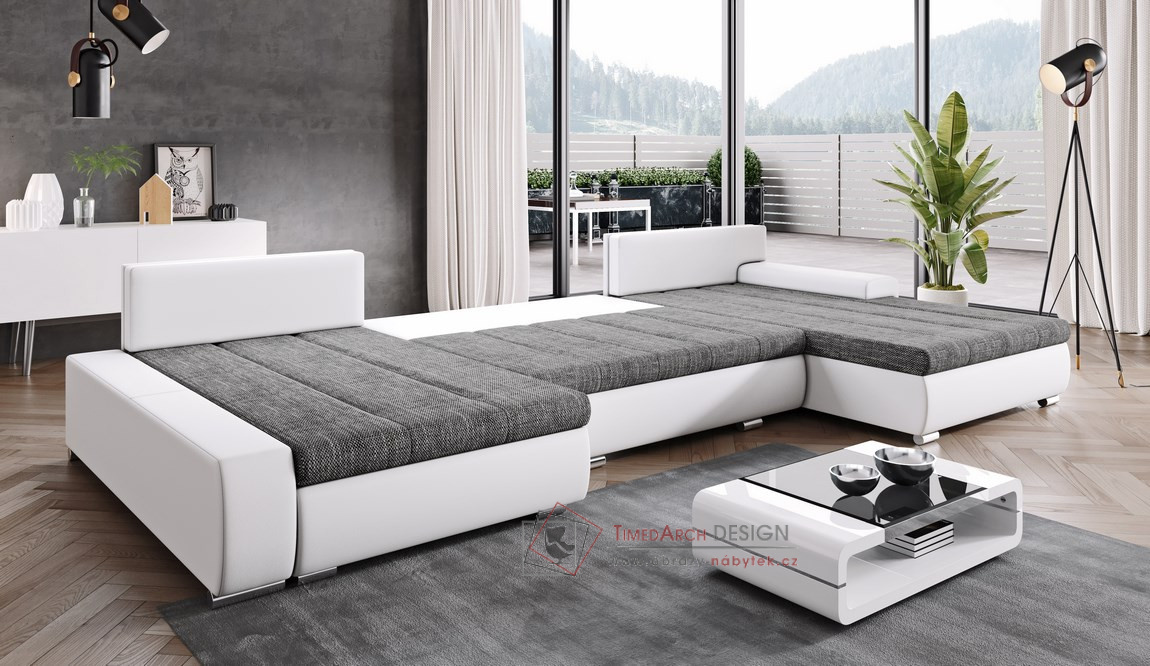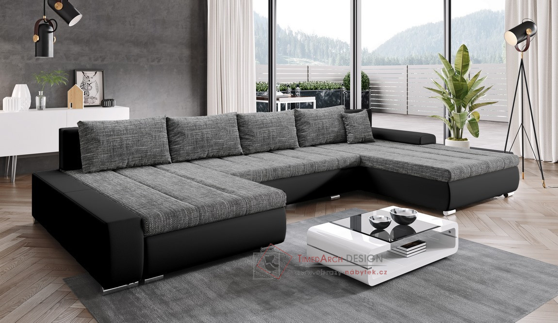 Praktická a prostorná celočalouněná rohová sedačka do tvaru písmene "U" v moderním provedení