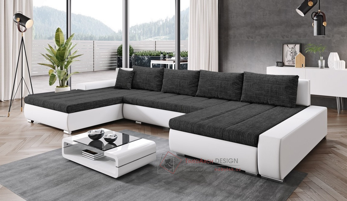 Praktická a prostorná celočalouněná rohová sedačka do tvaru písmene "U" v moderním provedení