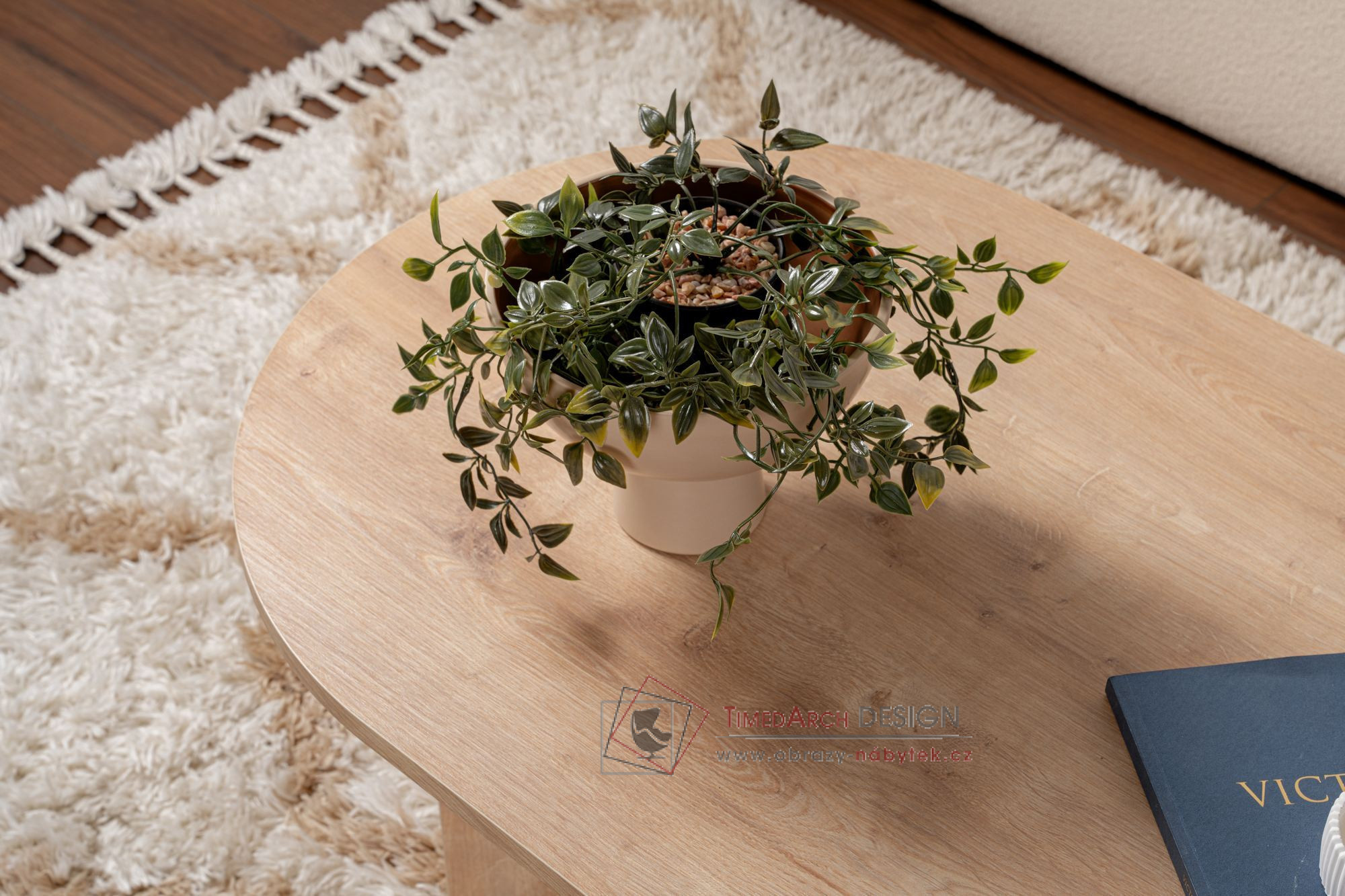 Představte si, že popíjíte ranní kávu nebo si užíváte útulný večer s blízkými u tohoto nádherného konferenčního stolku. Jeho sytá barva safírového dubu dodá každé místnosti nádech luxusu, zatímco 18 mm silná dřevotříska s melaminovým povlakem ze 100% materiálu zajišťuje odolnost a dlouhou životnost.