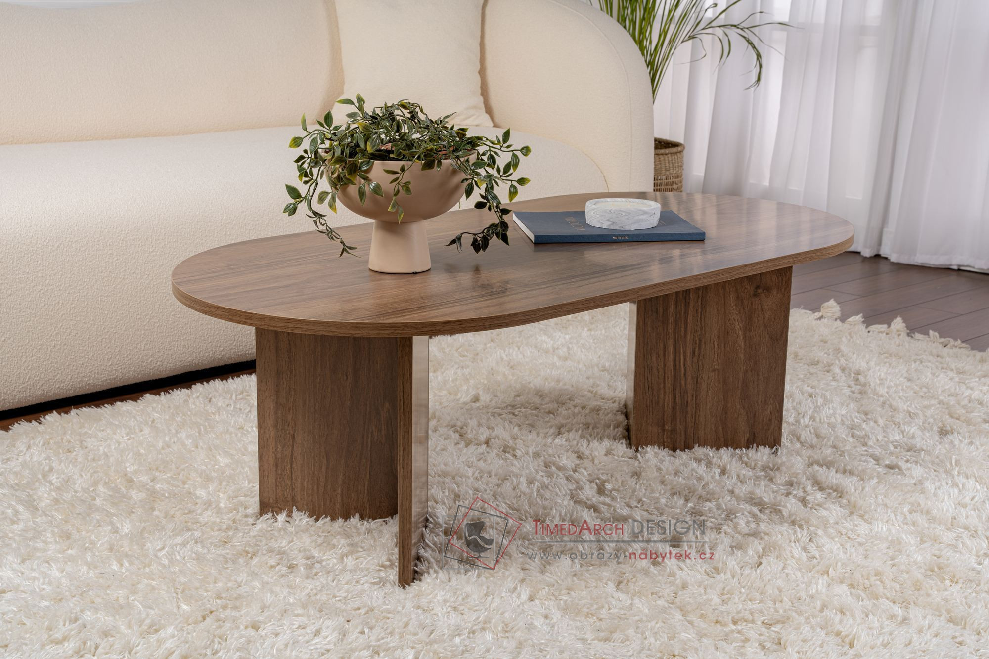 Tento konferenční stolek není jen kus nábytku, je to ztělesnění stylu a sofistikovanosti. Bohatá barva ořechového dřeva dodá každé místnosti nádech luxusu, zatímco elegantní design vyzařuje modernost a noblesu.