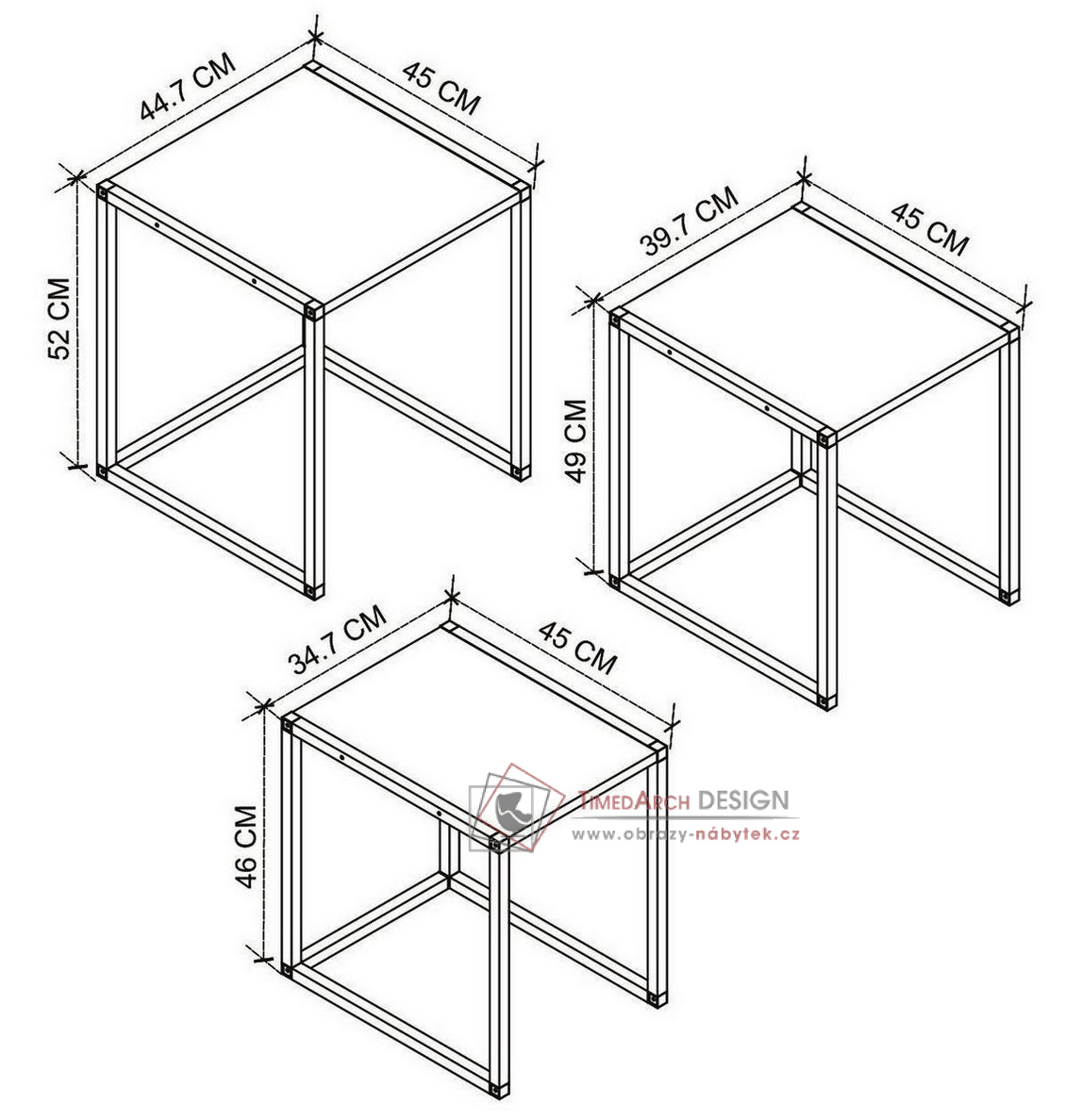 - stolek 3 šířka 45 cm, hloubka 45 cm, výška 52 cm