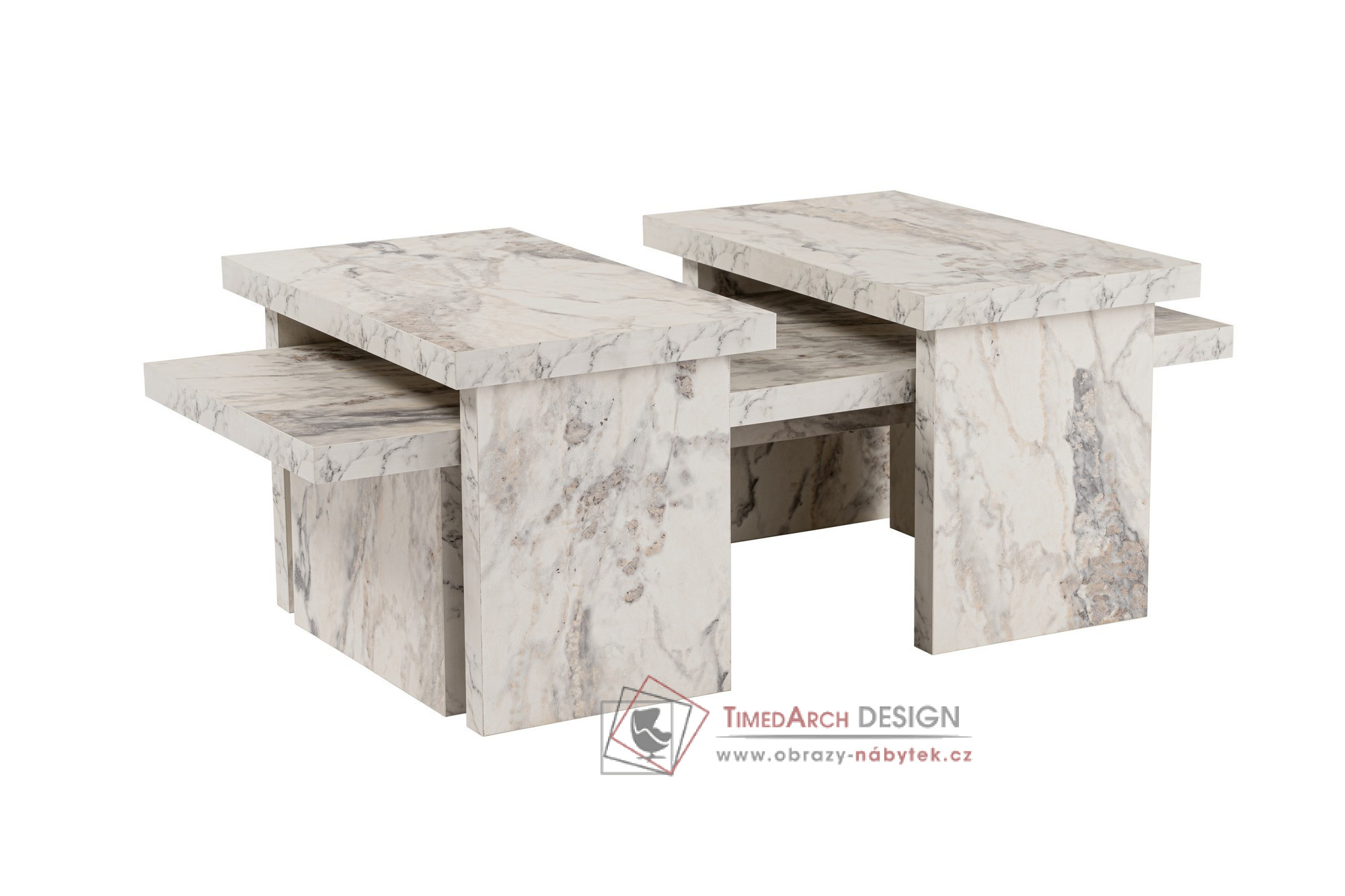 Sada konferenčních stolků z mramoru Freesia je vyrobena ze 100% dřevotřísky s melaminovým povlakem, což zaručuje odolnost a dlouhou životnost. Tloušťka 18 mm zvyšuje robustnost stolků, díky čemuž jsou ideální pro každodenní použití.
