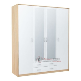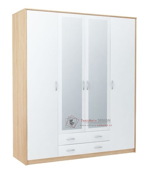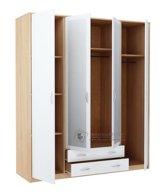 Šatní skříň 168cm VIKA 4D2S je vyrobená z laminované DTD v kombinaci barevného provedení dub sonoma / bílá.