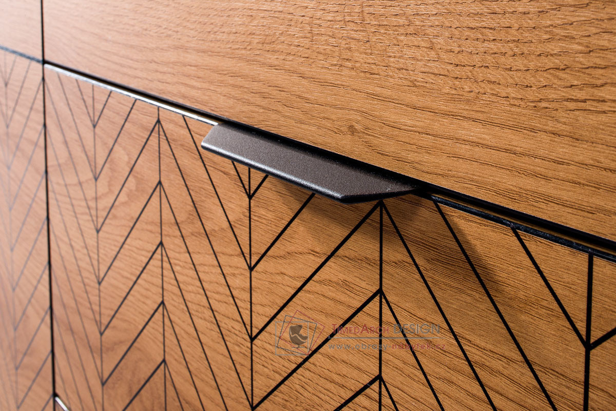 Kolekce KERBIS ve stylu moderní elegance. Charakteristickým znakem nábytku je jeho stylové a elegantní zdobení na přední části ve vzoru rybí kosti.