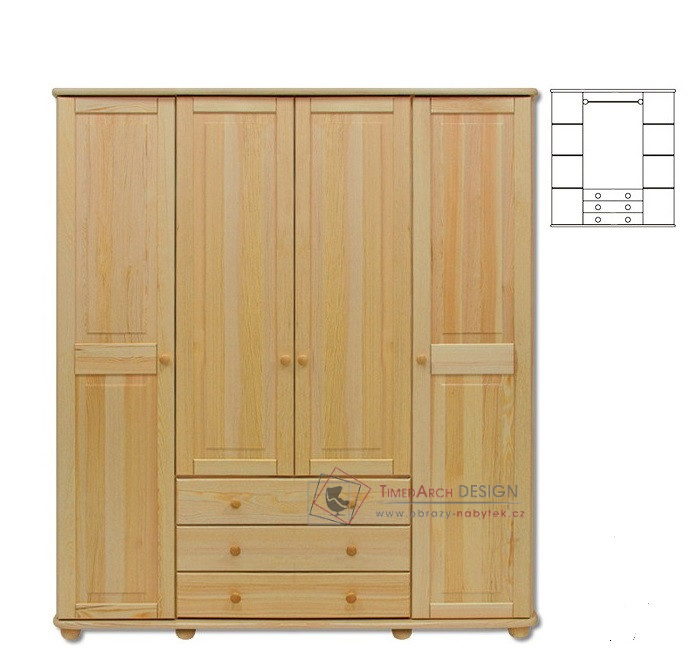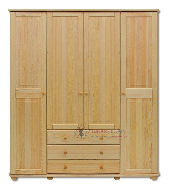 Šatní skříň 4-dveřová FS-129 z řady masivního nábytku je vyrobená z kvalitního borovicového dřeva.