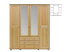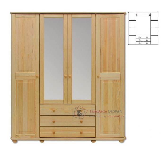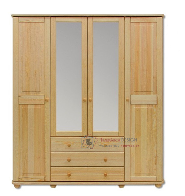 Šatní skříň 4-dveřová se zrcadlem FS-130 z řady masivního nábytku je vyrobená z kvalitního borovicového dřeva.