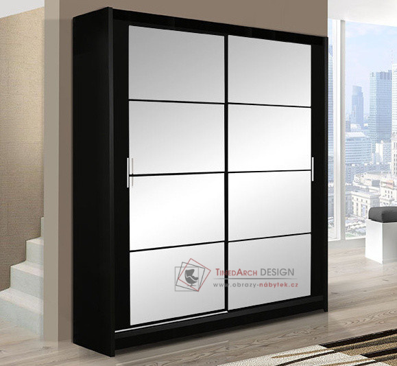 Šatní skříň s posuvnými dveřmi DAKOTA je vyrobená z laminované DTD v černé barvě.