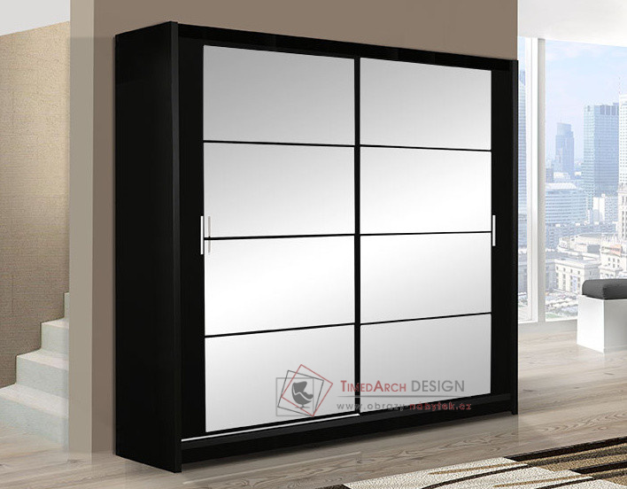 Šatní skříň s posuvnými dveřmi DAKOTA je vyrobená z laminované DTD v černé barvě.