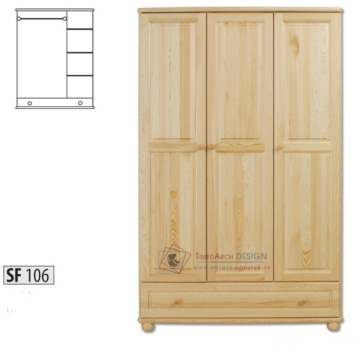 Šatní skříň FS-106 o šířce 120cm z řady masivního nábytku je vyrobena z kvalitního borovicového dřeva.