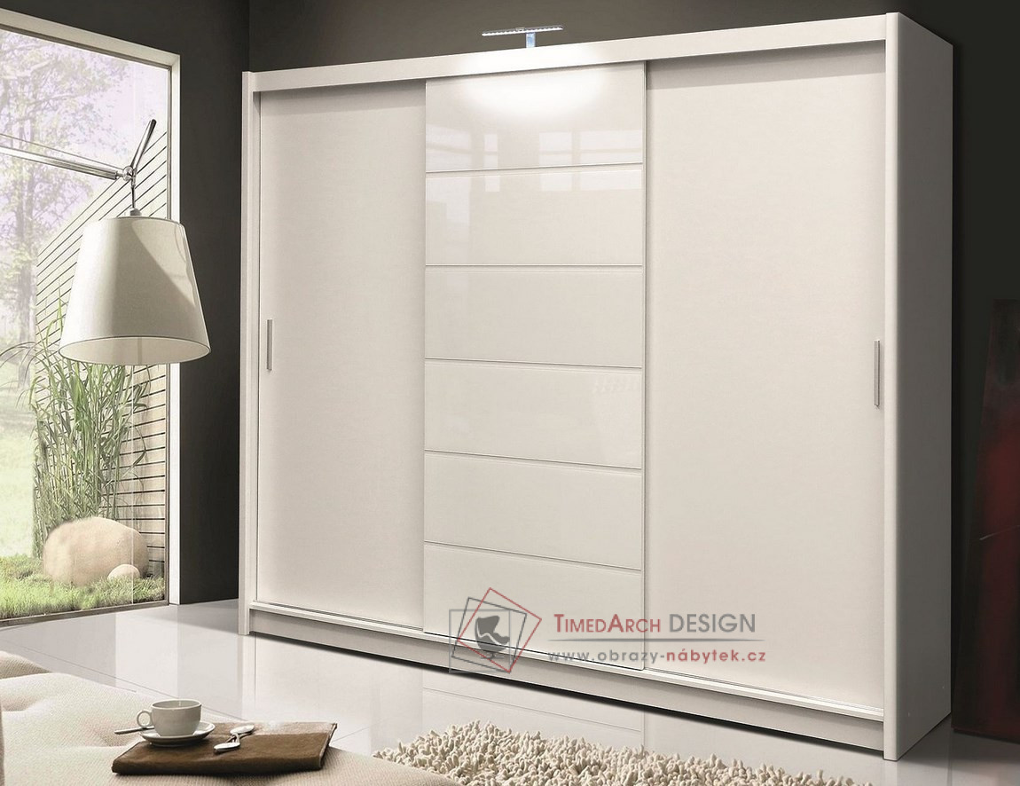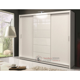 Šatní skříň s posuvnými dveřmi MALIBU je vyrobená z laminované DTD v bílé barvě.