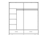 Hrany jsou olepeny ABS páskou. Dveře jsou osazeny zrcadly. Součástí skříně jsou 2 praktické zásuvky. Uspořádání polic viz. perokresba.