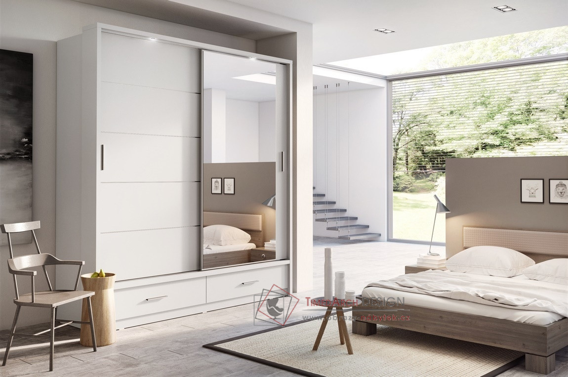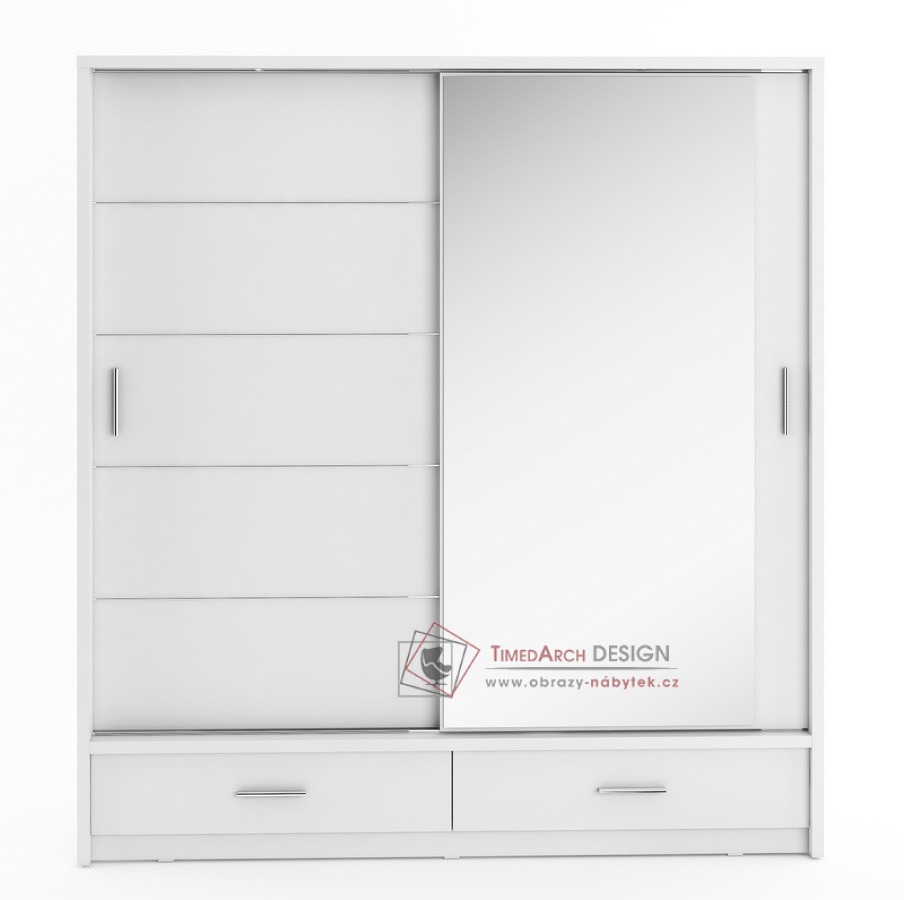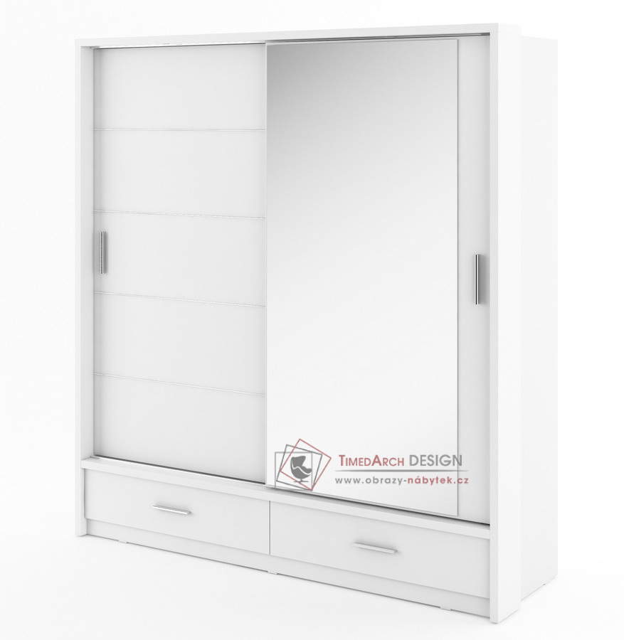 Šatní skříň dvoudveřová s posuvnými dveřmi ARTI je vyrobená z laminované DTD bílé barvy.