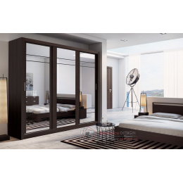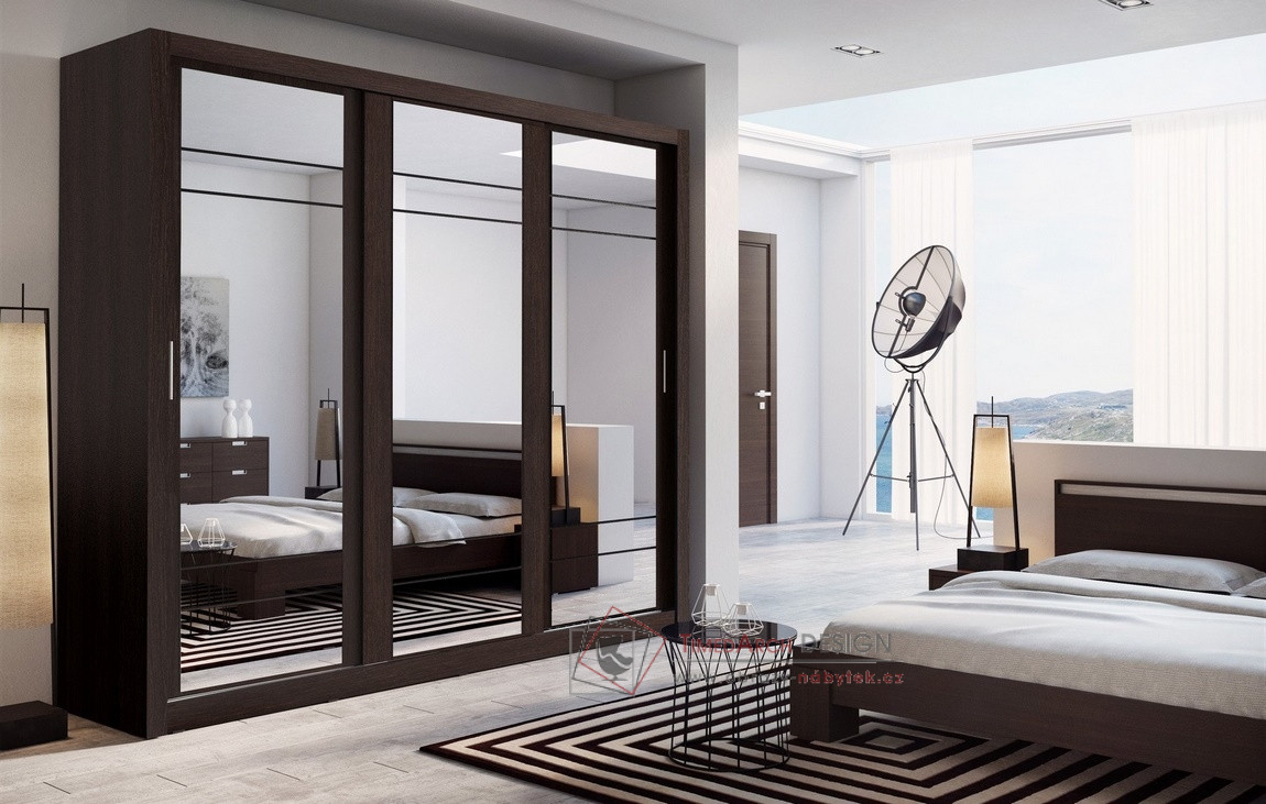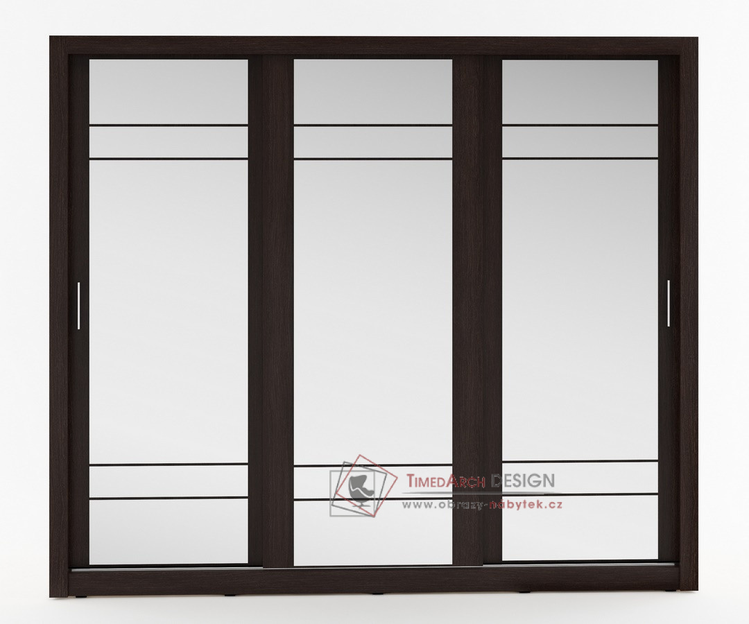 Šatní skříň třídveřová s posuvnými dveřmi ARTI je vyrobená z laminované DTD v barevném provedení wenge.