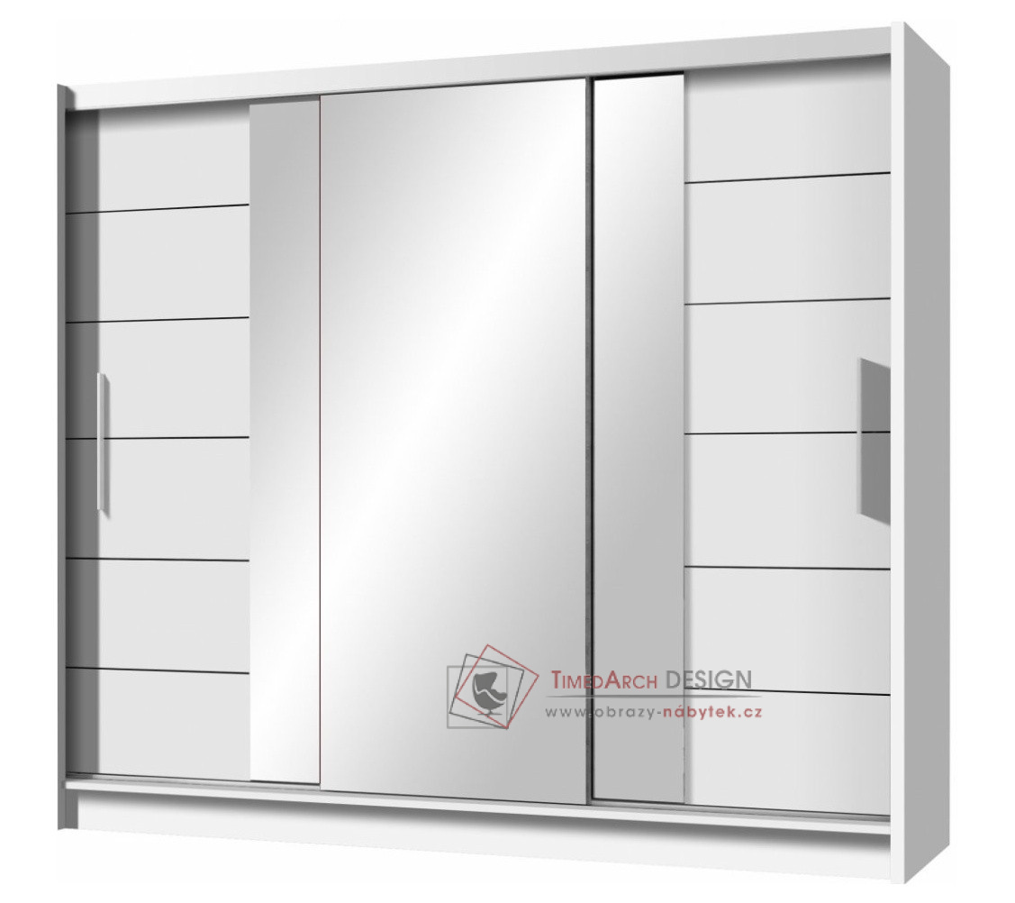 Šatní skříň se 3-mi posuvnými dveřmi LIZBONA 2 je vyrobená z laminované DTD v bílé barvě.