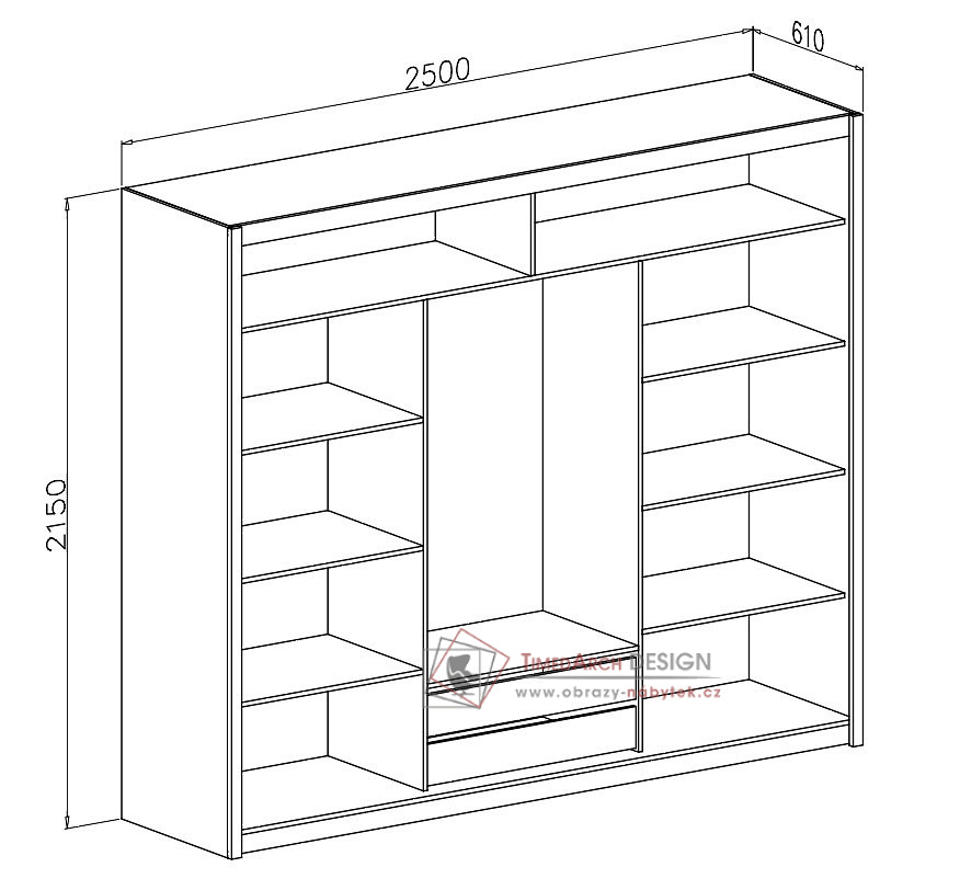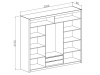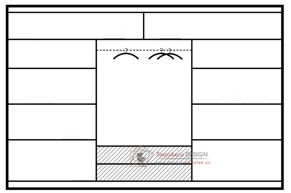Dveře jsou osazeny zrcadly. Uspořádání polic viz. perokresba. Hrany u skříně jsou olepeny ABS páskou. Hlinikové pojezdové lišty.