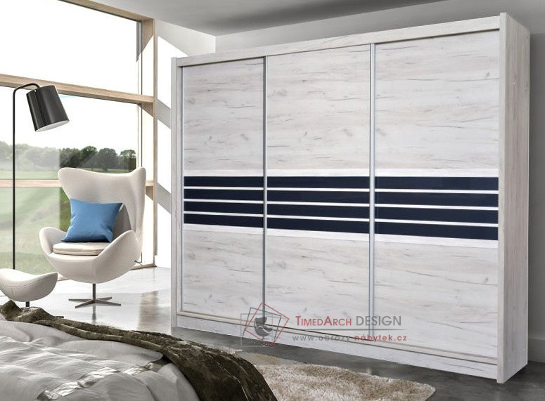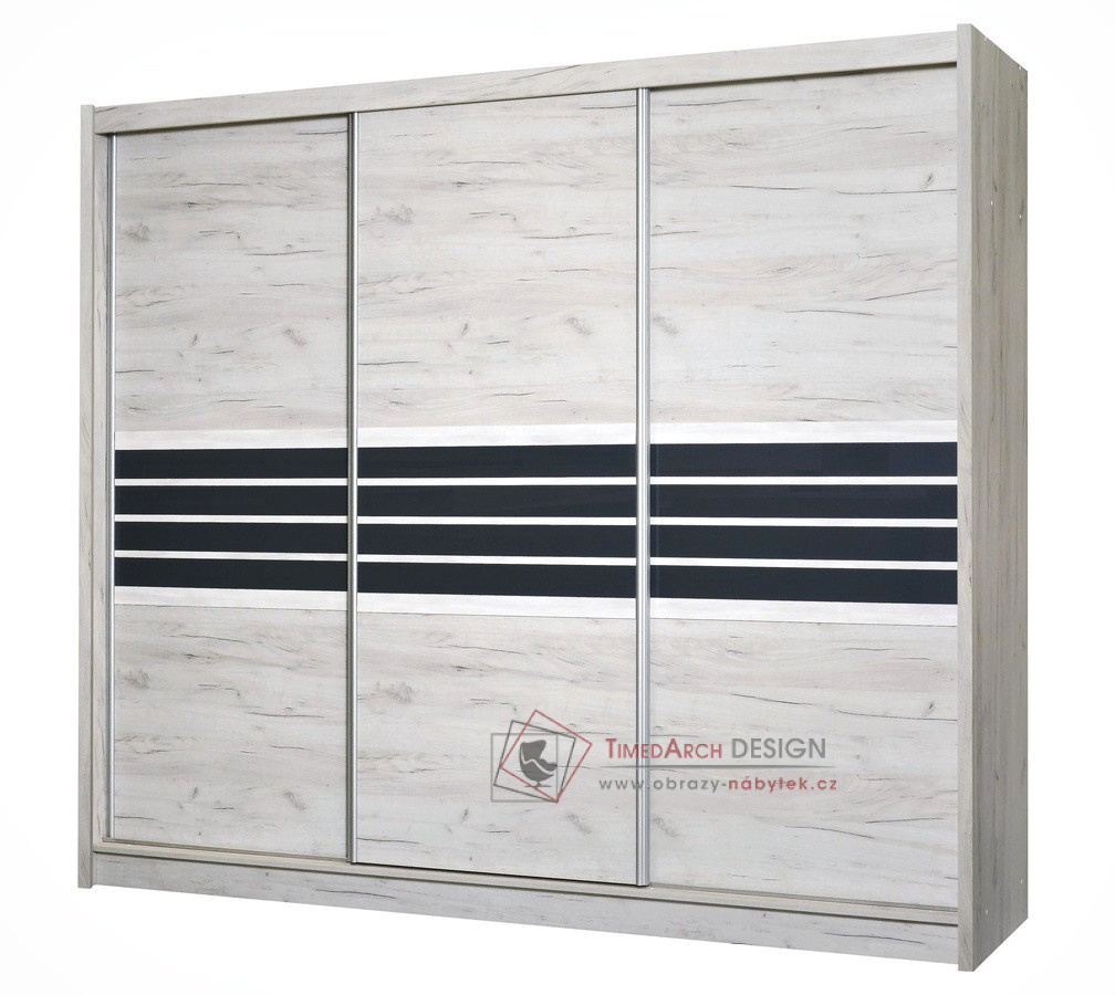 Šatní skříň s posuvnými dveřmi TURYN je vyrobená z laminované DTD v barvě dub craft.