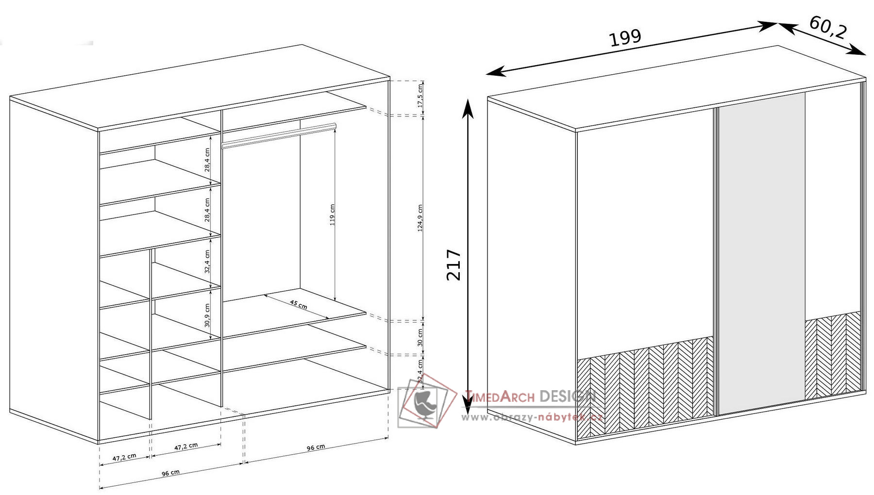Kolekce KERBIS ve stylu moderní elegance. Charakteristickým znakem nábytku je jeho stylové a elegantní zdobení na přední části ve vzoru rybí kosti.