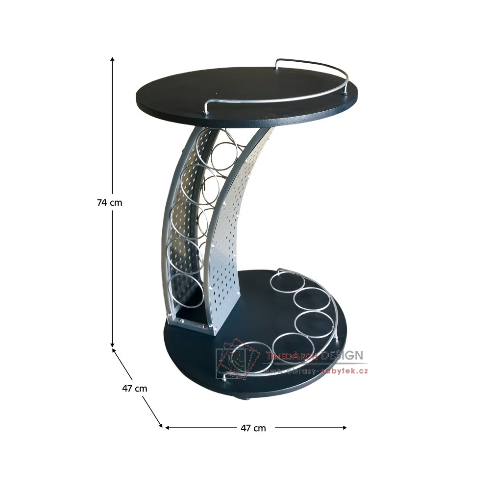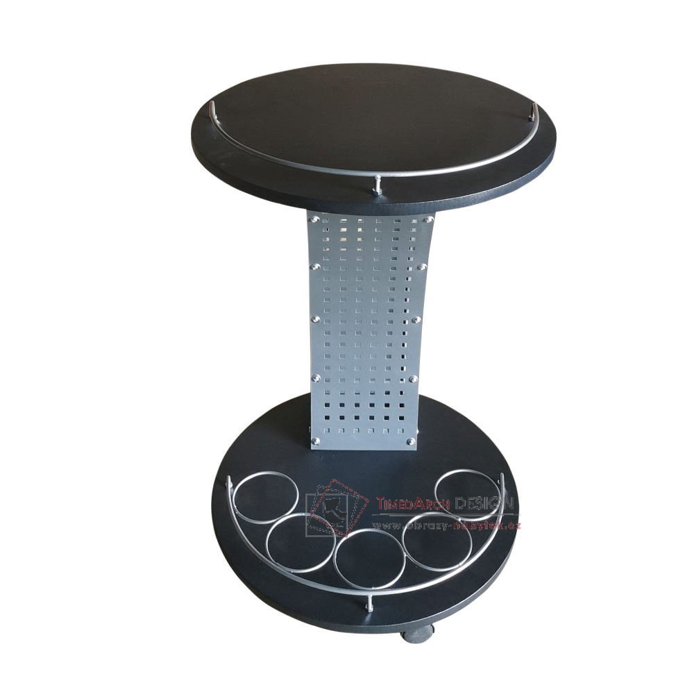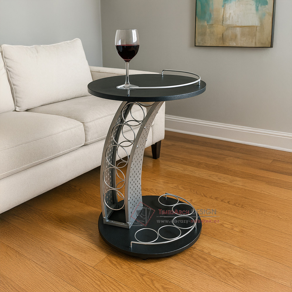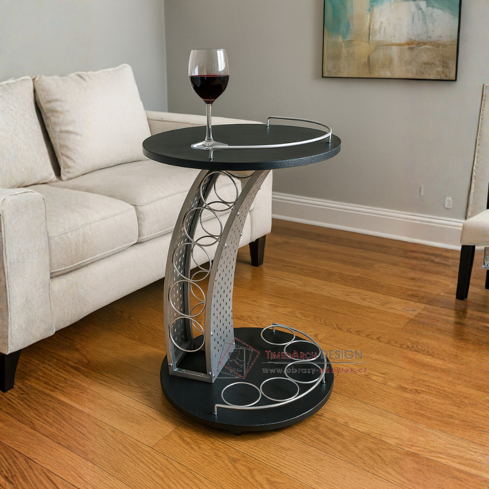 Malý, praktický kousek, se kterým bude servírována hračka. Svým originálním a trendovým designem ohromí členy vaší rodiny i vaše hosty. Poskytuje patrovou odkládací plochu na láhve, kde umístíte až pět lahví, další odkládací plochu na láhve a sklenice ve spodní části. Ve vrchní části zase naleznete odkládací prostor například na mísu ovoce či menší občerstvení. Kolečka umožňují snadnou manipulaci a přesouvání po prostoru. Stolek je tvořen kombinací laminované DTD a kovu. Servírovací stolek ALADAR NEW nabízíme v barevném provedení černá v kombinaci se stříbrnou.