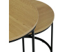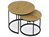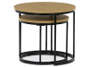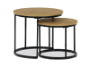 Kulaté desky v přírodním dekoru skvěle kontrastují s černými kovovými nohami, což vytváří elegantní industriální vzhled. Stoly lze snadno zasunout pod sebe, což šetří prostor a zvyšuje jejich praktické využití. Jsou ideální do obývacího pokoje k odložení nápojů, knih nebo dekorací. Díky pečlivému zpracování a kvalitním materiálům je tato sada stylovým a odolným doplňkem každého interiéru.