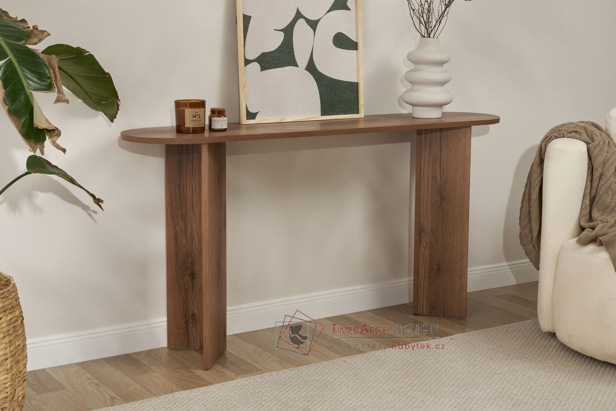 Nadčasová barva konzolového stolku dodá každé místnosti nádech svěžesti a jasu. Bez námahy doplní jakýkoli styl interiéru, ať už moderní, tradiční nebo eklektický. Všestrannost umožňuje snadné kombinování s dalšími kusy nábytku a vytváření tak uceleného a harmonického vzhledu.