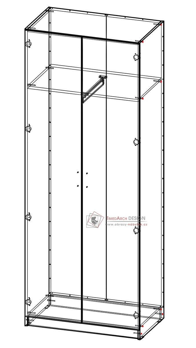 Skříň 2-dveřová je vyrobená z laminované DTD v barevném provedení dub apalačský, dvířka v provedení antracit.
