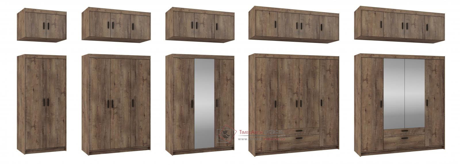 Vnitřní uspořádání skříně je praktické a poskytuje dostatek úložného prostoru. Své uplatnění najde v ložnici, předsíni i v dětském pokoji. Ke skříni lze dokoupit nádstavec. Skříň je dodávaná v demontu a nabízíme ji ve několika barevných provedeních. Součástí balení je montážní plánek včetně všech potřebných spojovacích materiálů.