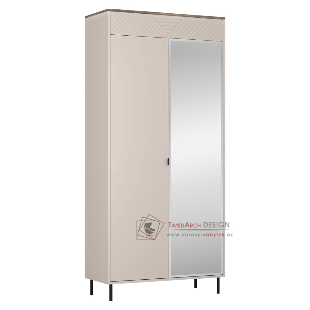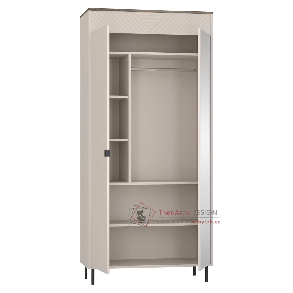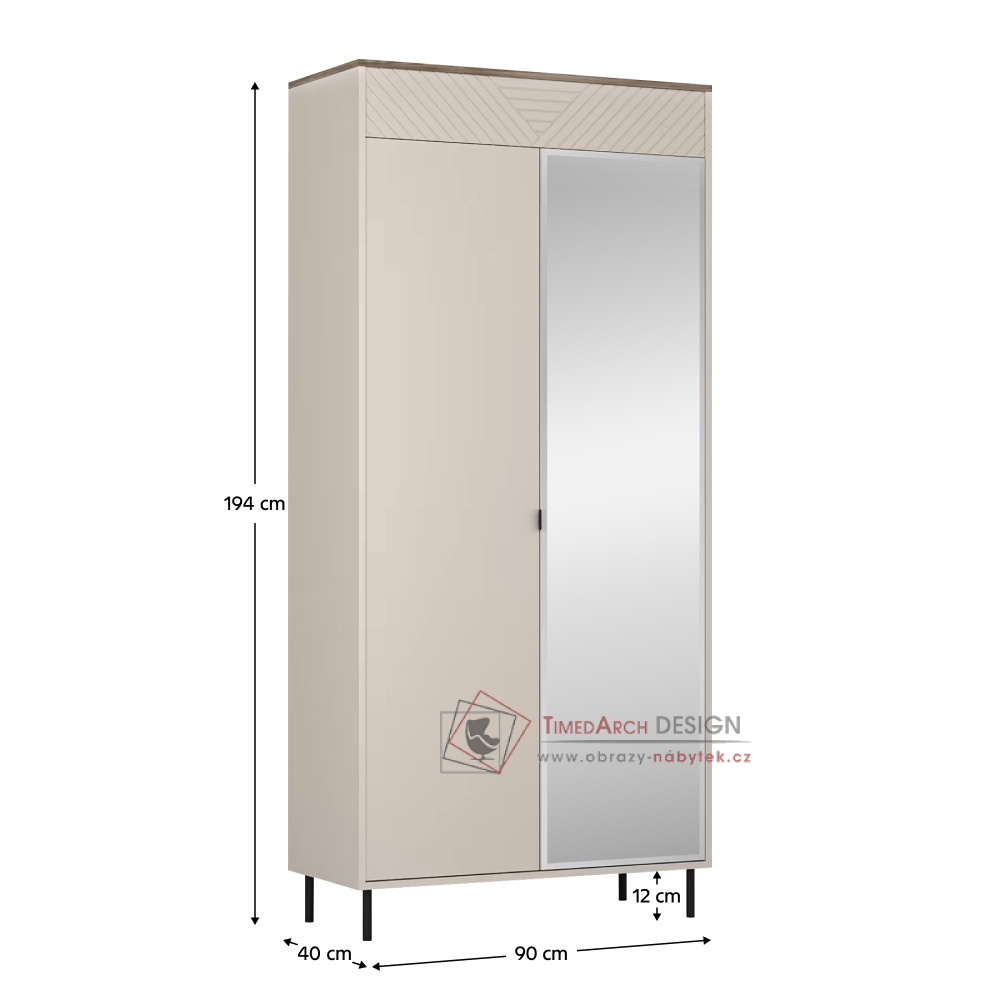 Skříň se zrcadlem EYCO 2D/40 nabízí svůj úložný prostor v podobě polic a výsuvné věšákové tyče. Dominantou skříně je velké zrcadlo, které vám každé ráno poradí, což vám svědčí nejvíc. Všechny vaše věci získají jedinečný a stylový domov.