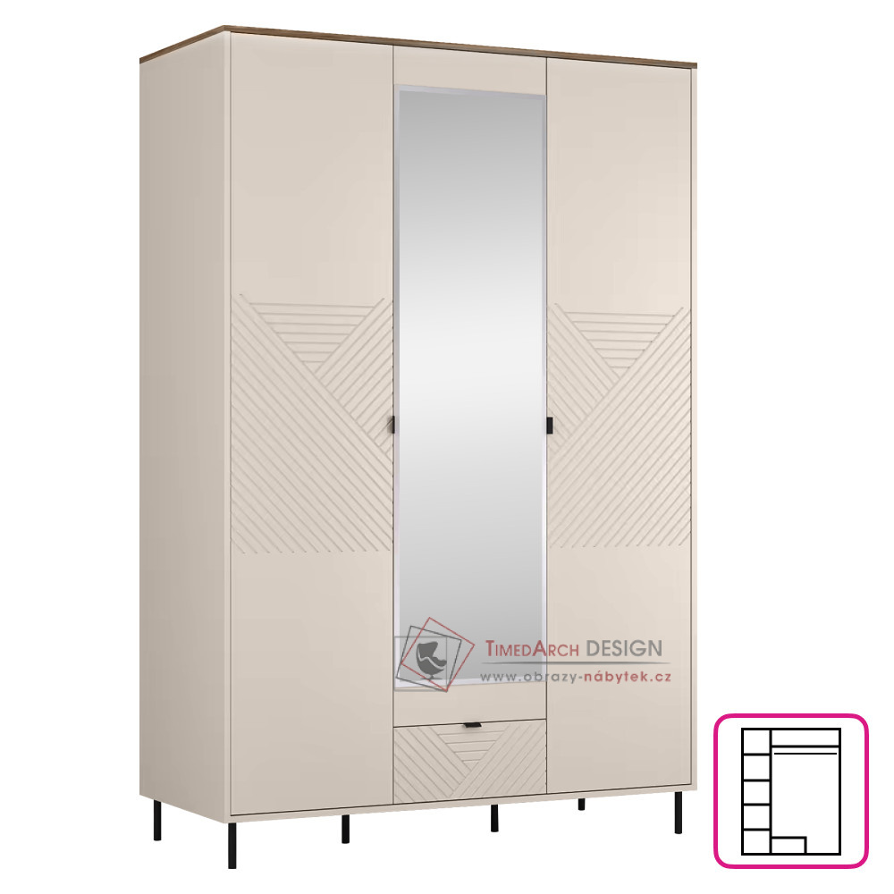Skříň se zrcadlem EYCO 3D1S nabízí svůj úložný prostor v podobě polic , věšákové tyče a jedné zásuvky . Dominantou skříně je velké zrcadlo , které vám každé ráno poradí, což vám svědčí nejvíc. Všechny vaše věci získají jedinečný a stylový domov.