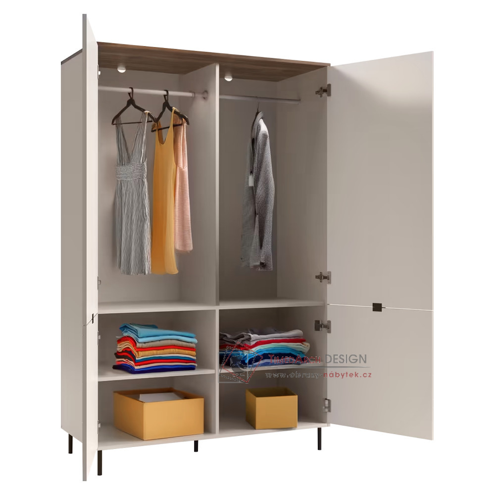 Čtyřdveřová skříň EYCO 4D nabízí svůj úložný prostor v podobě polic a dvou věšákových tyčí . Všechny vaše věci získají jedinečný a stylový domov.