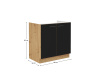 Spodní skříňka Monrovia 80ZL 2F BB je se dvěmi dvířky. Dvířka jsou v provedení černý mat, korpus je v provedení dub artisan. Vnitřek skříňky je bílý. Dvířka se otevírají pomocí úchytky. Vyniká také tichým dorazem dvířek. Tato skříňka je určena na dřez.