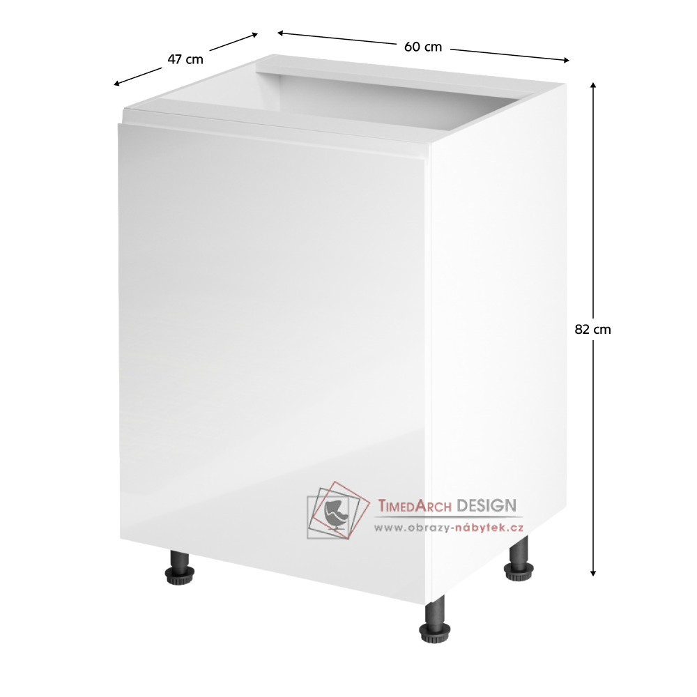 Spodní skříňka D601F je s dvířky. Dvířka jsou bez úchytky a otevírají se do levé strany. Uvnitř se nachází jedna police.
