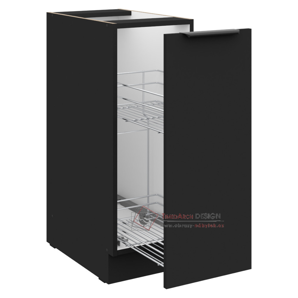 Dolní skříňka SIBER 30 D CARGO BB je s dvířky. Uvnitř ukrývá výsuvný kovový koš. Skříňka je dodávána s dolní lištou bez pracovní desky.