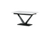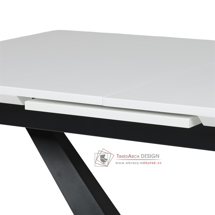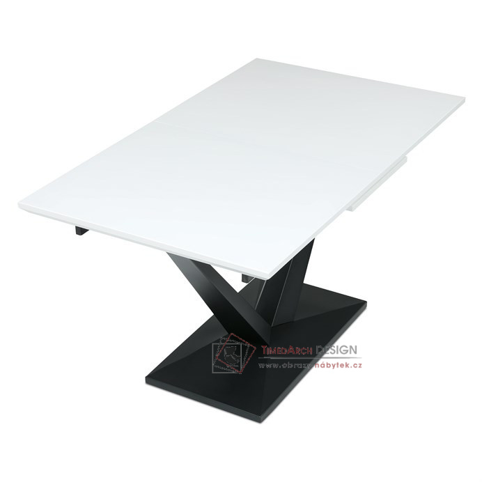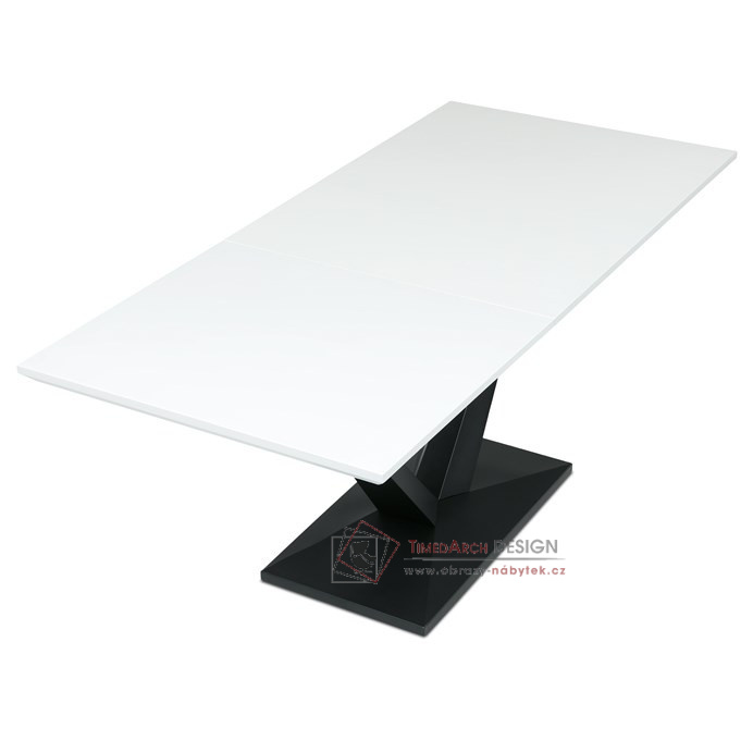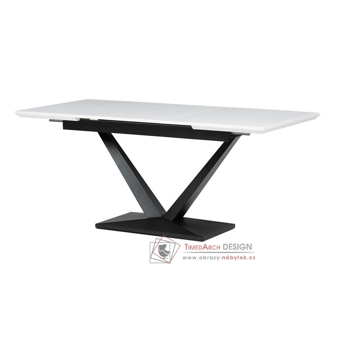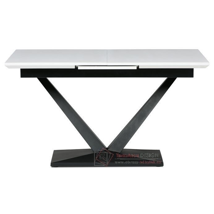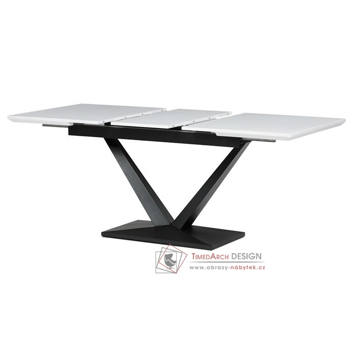 Rozkládací jídelní stůl HT-W1630 WT vyniká svou robustní centrální nohou ve tvaru V.
