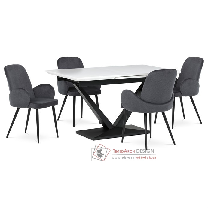 Bílá matná deska z MDF materiálu nabízí odolný a snadno udržovatelný povrch, ideální pro každodenní stolování. Díky rozkládacímu mechanismu snadno přizpůsobíte velikost stolu aktuálním potřebám, což je skvělé pro rodinná setkání nebo hosty.Tento stůl bude stylovým a funkčním doplňkem každé jídelny, který zaujme na první pohled.