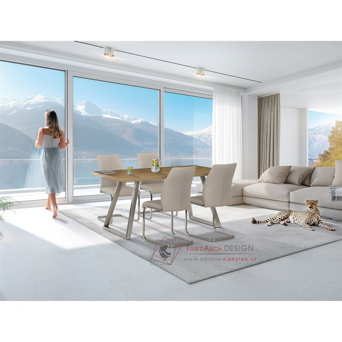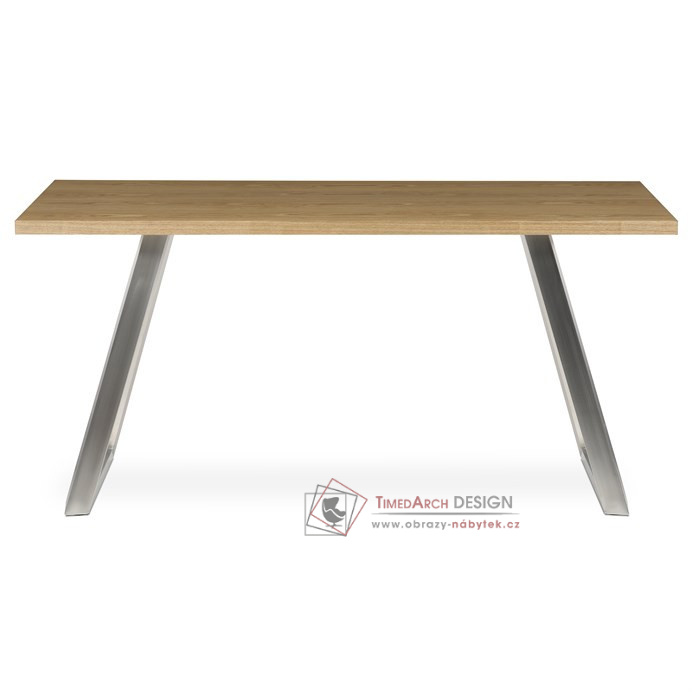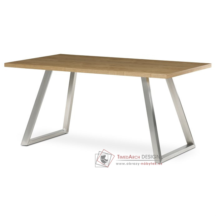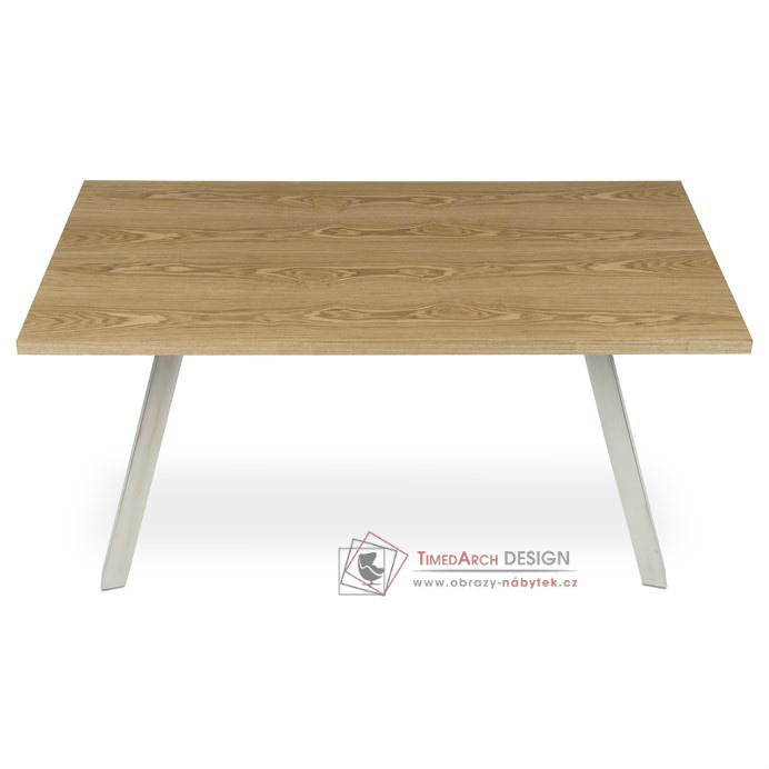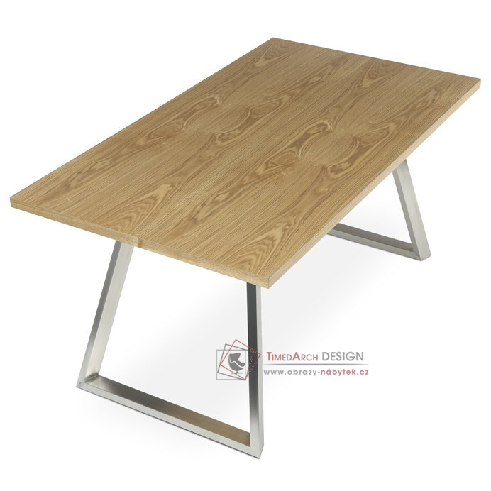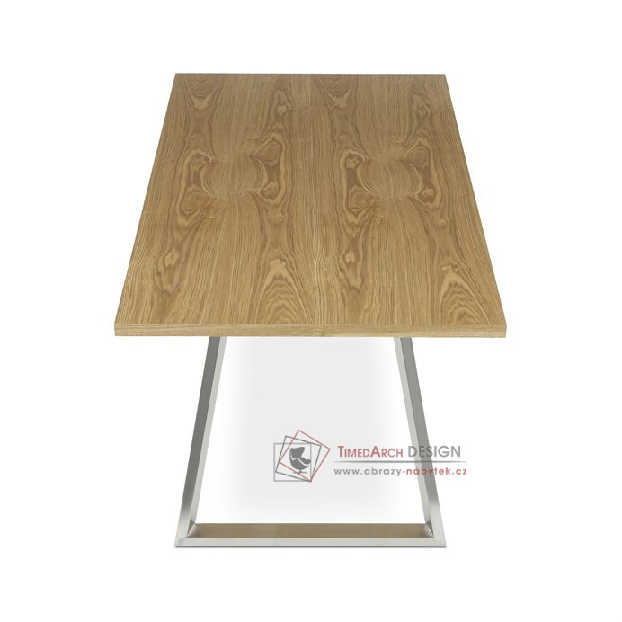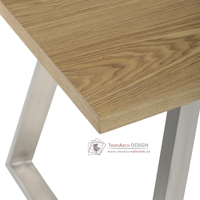 Jeho deska je vyrobena z kvalitní dýhy s dekorem dubu, což dodává stolu elegantní a přírodní vzhled. Nohy jsou vyrobeny z broušeného nerezu, což řadí tento stůl mezi krále svého oboru. Stůl je ideální pro každodenní stolování v rodinném kruhu i pro posezení s přáteli.