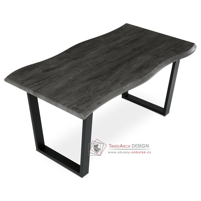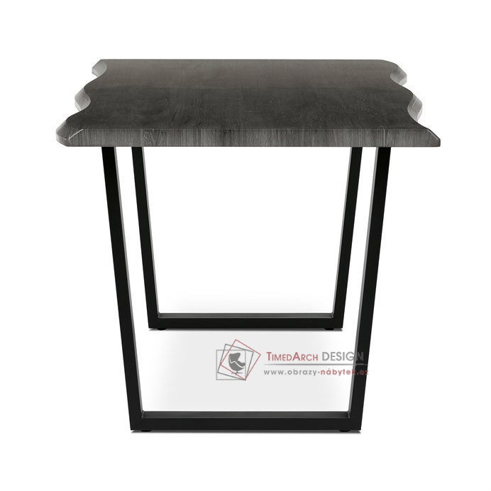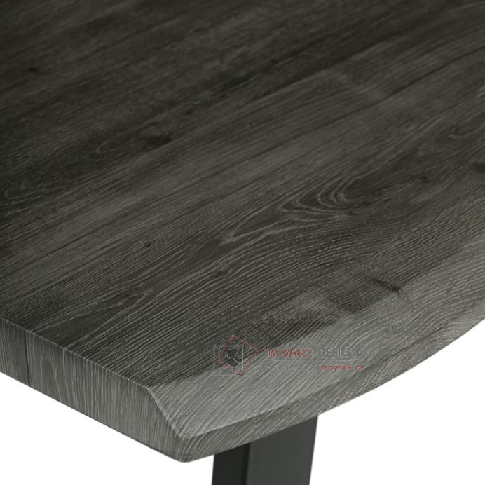 Deska stolu v dekoru divokého dubu s šedým povrchem nabízí atraktivní strukturu a odolnost díky kvalitní MDF. Působivý vzhled je podtržen černými kovovými nohami, které poskytují stabilitu a vytvářejí moderní kontrast k šedému odstínu desky. Atypický tvar desky dodává stolu originalitu, zatímco jeho pevná konstrukce zajišťuje dlouhou životnost. Tento stůl je ideální pro milovníky designu, kteří hledají spojení funkčnosti a stylu.