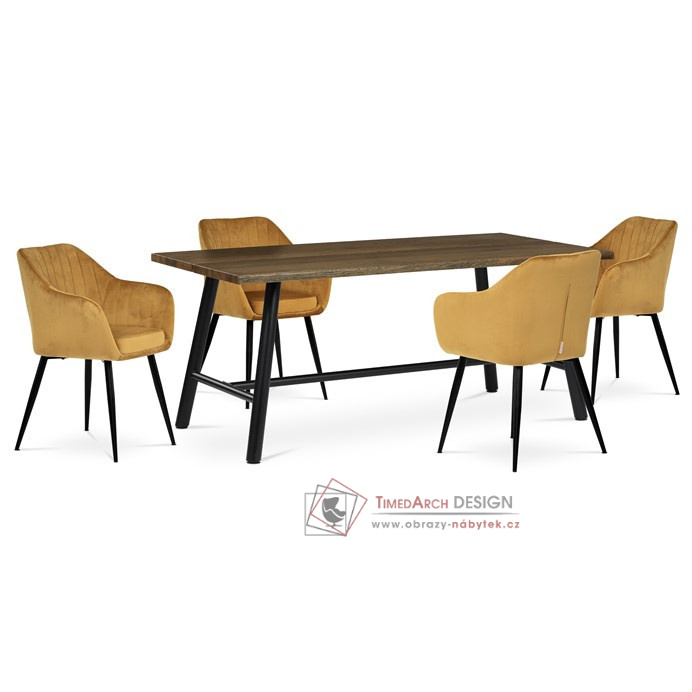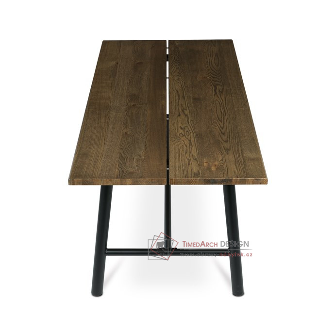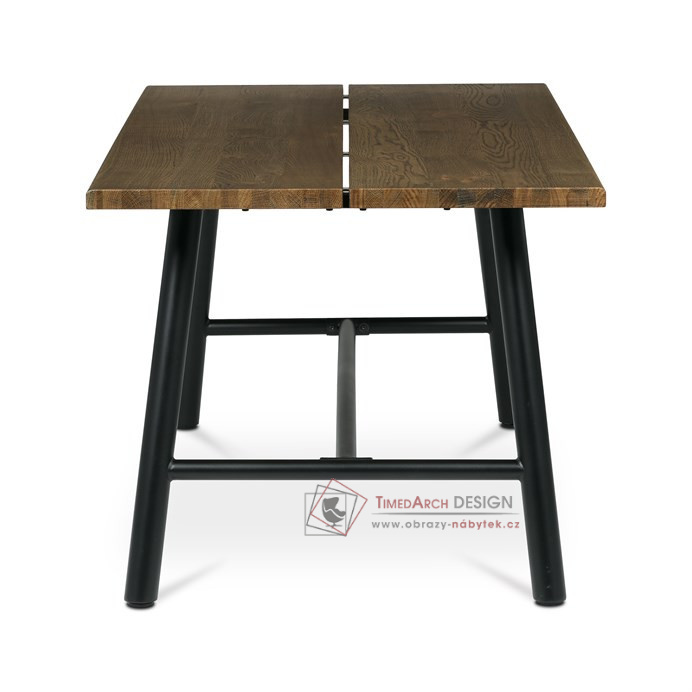Jeho dýhová deska v dekoru ořechu dodává interiéru teplý a přírodní nádech, zatímco černé kovové nohy zajišťují stabilitu a odolnost. Obdélníkový tvar a matný povrch podtrhují moderní vzhled stolu. Díky robustní konstrukci se tento stůl stane centrálním prvkem každé jídelny. Stůl se skládá ze dvou samostatných kusů desky, což podtrhuje jeho nadčasový design.