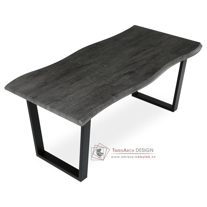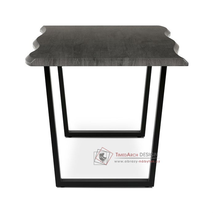 Deska stolu v dekoru divokého dubu s šedým povrchem nabízí atraktivní strukturu a odolnost díky kvalitní MDF. Působivý vzhled je podtržen černými kovovými nohami, které poskytují stabilitu a vytvářejí moderní kontrast k šedému odstínu desky. Atypický tvar desky dodává stolu originalitu, zatímco jeho pevná konstrukce zajišťuje dlouhou životnost. Tento stůl je ideální pro milovníky designu, kteří hledají spojení funkčnosti a stylu.