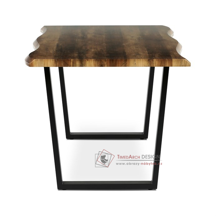 Deska stolu v dekoru starého dřeva nabízí atraktivní strukturu a odolnost díky kvalitní MDF. Působivý vzhled je podtržen černými kovovými nohami, které poskytují stabilitu a vytvářejí moderní kontrast k odstínu starého dřeva desky. Atypický tvar desky dodává stolu originalitu, zatímco jeho pevná konstrukce zajišťuje dlouhou životnost. Tento stůl je ideální pro milovníky designu, kteří hledají spojení funkčnosti a stylu.