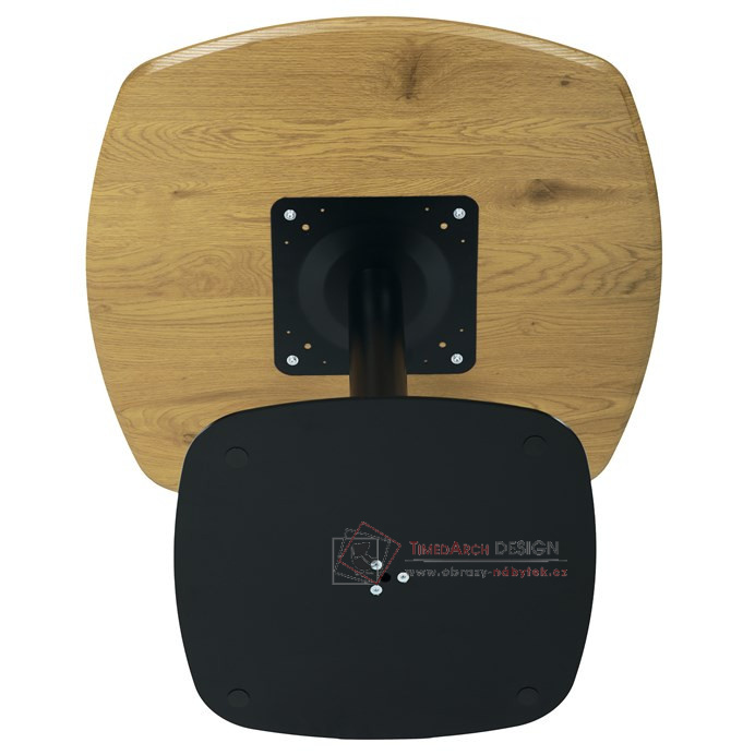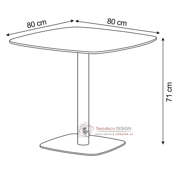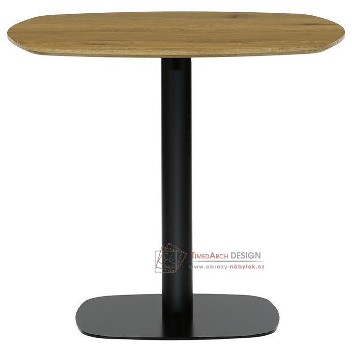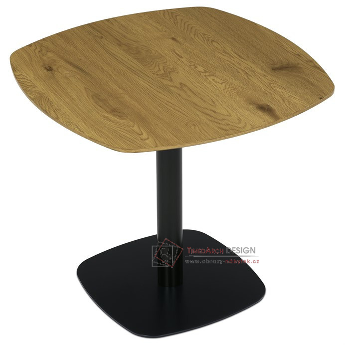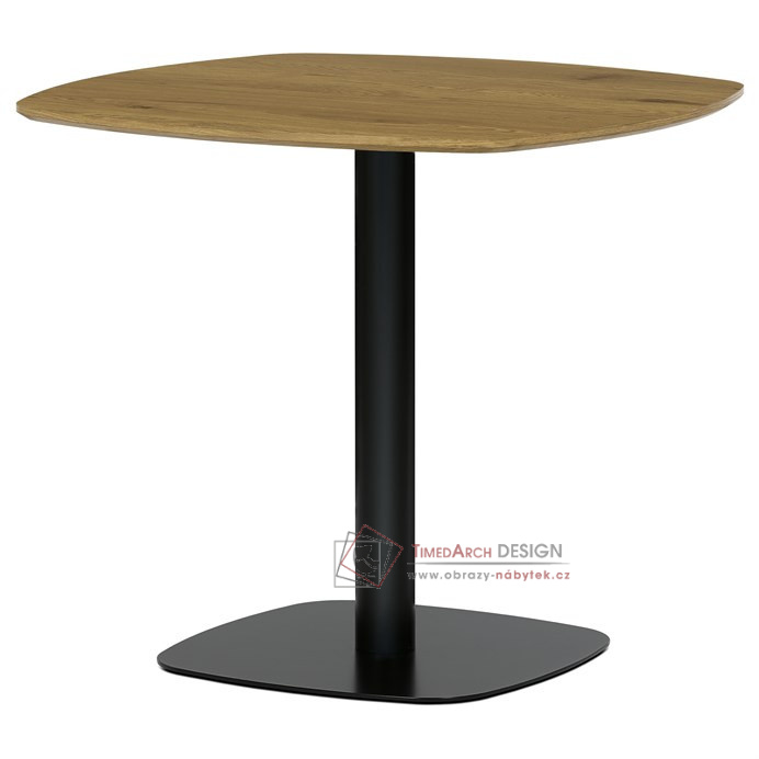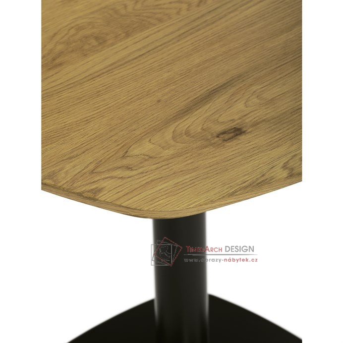 Jeho čisté linie a jednoduchý design s centrální kovovou nohou v černé barvě zajišťují nejen stabilitu, ale také moderní vzhled. MDF deska v dekoru dubu dodává stolu nadčasovou eleganci. Díky čtvercovému tvaru a kompaktním rozměrům je ideální pro menší jídelny nebo kuchyně. Tento stůl nejen že šetří místo, ale zároveň dodává prostoru lehkost a svěžest.