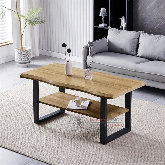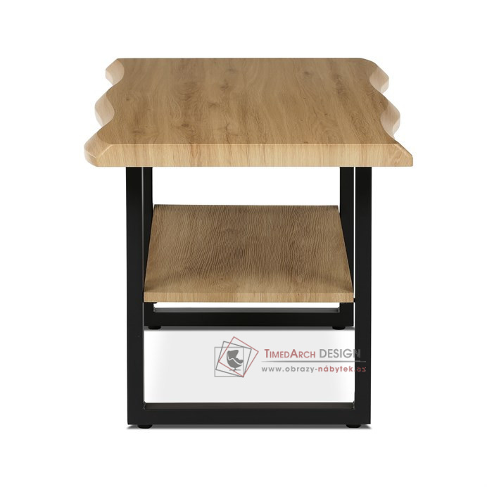Robustní konstrukce kovu zajišťuje stabilitu a dlouhou životnost. Atypický tvar MDF desky dodává stolku vytříbený vzhled a spodní police poskytuje praktický úložný prostor pro knihy či časopisy. Tento stolek je nejen stylovým, ale i praktickým doplňkem pro každou domácnost, kde bude skvěle ladit s ostatním nábytkem v podobném stylu.