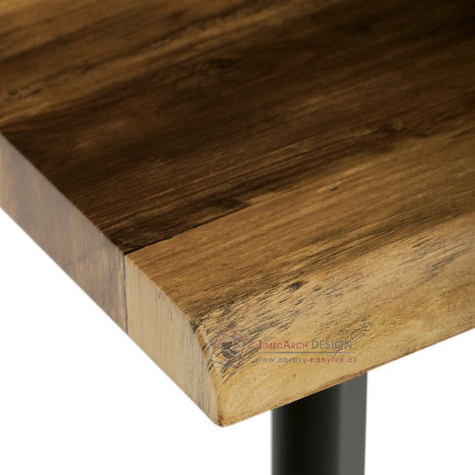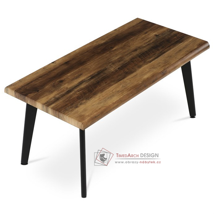 Deska v dekoru starého dřeva působí autenticky a příjemně ladí s černými kovovými nohami, které dodávají stolku stabilitu a moderní industriální vzhled. Obdélníkový tvar poskytuje dostatek prostoru pro odkládání nápojů, knih či dekorací. Stolek je díky svému designu i použitým materiálům snadno kombinovatelný s ostatním nábytkem v různých stylech interiérů, ať už rustikálních či moderních.