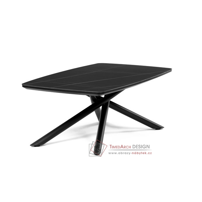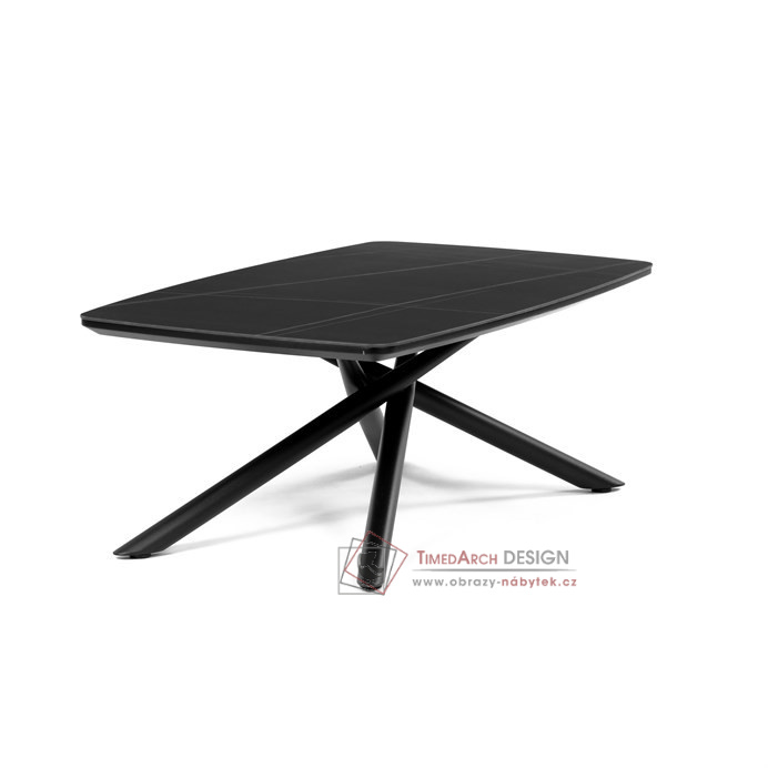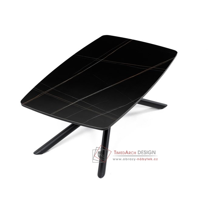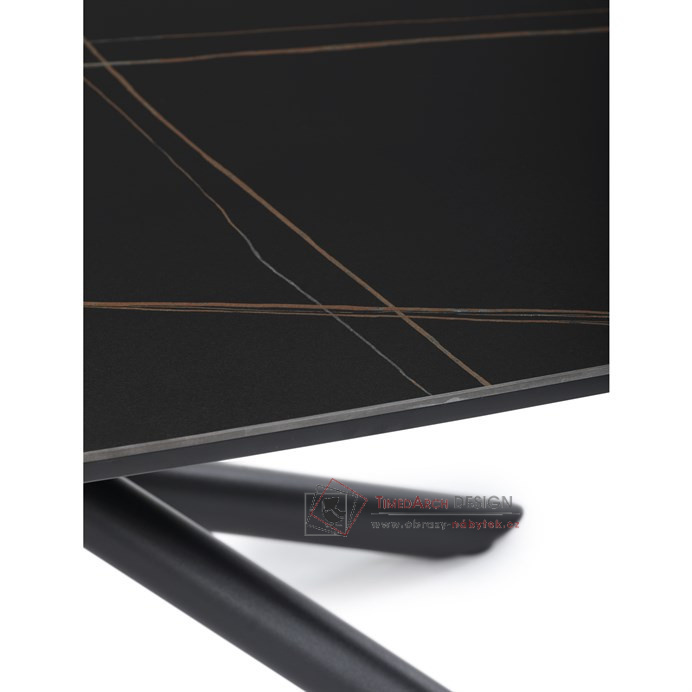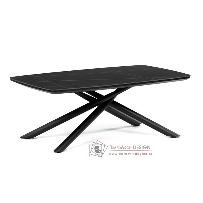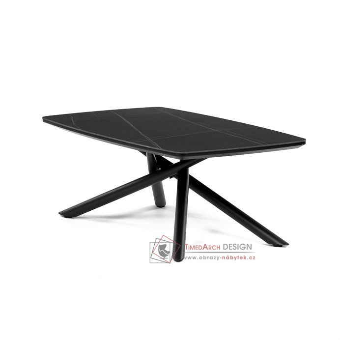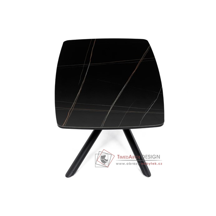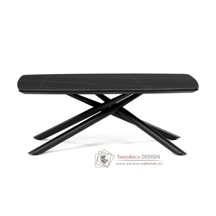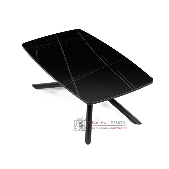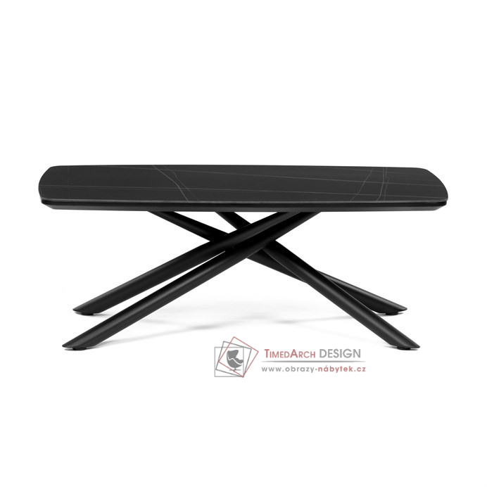 Deska ze slinuté keramiky s imitací černého mramoru dodává stolu luxusní vzhled. Pevná kovová konstrukce v černé barvě poskytuje stabilitu a elegantně kontrastuje s tmavou deskou. Centrální kruhová podnož tvoří originální prvek, který oživí jakýkoliv moderní interiér. Tento stolek je ideální pro obývací pokoje, kde chcete kombinovat styl s funkčností. Výjimečný design z něj dělá dominantní prvek vašeho prostoru.