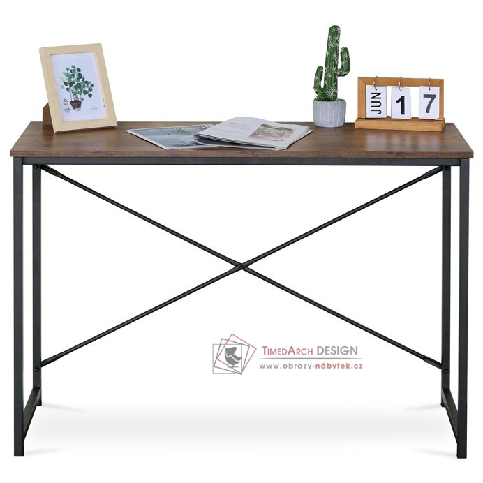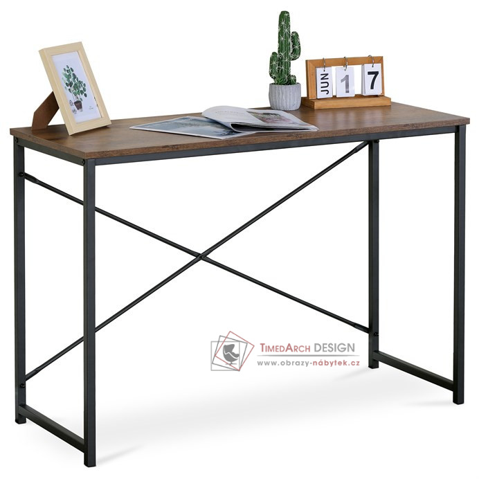 Přírodní deska z MDF v dekoru starého dřeva dodává stolu elegantní vzhled, zatímco pevná černá kovová konstrukce zajišťuje stabilitu a odolnost. Díky kompaktním rozměrům se hodí i do menších místností, aniž by ztratil na praktičnosti. Jeho minimalistický design snadno zapadne do moderních i klasických interiérů. Tento stůl je skvělým spojením funkčnosti a atraktivního vzhledu pro vaše pracovní potřeby.